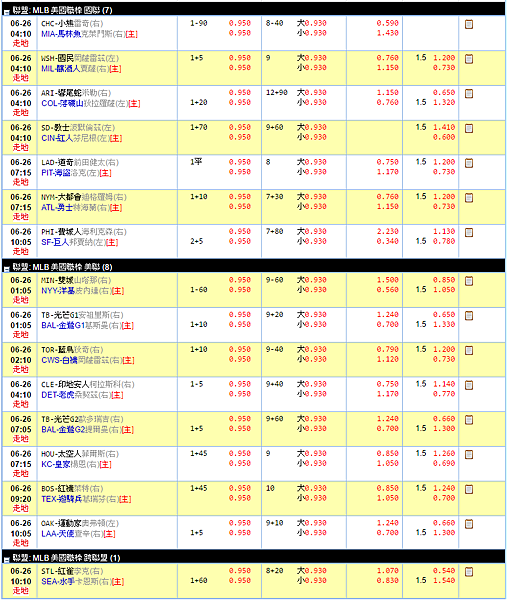 1+30 0.970 0.970 8+30 大 0.960 小 0.960 0.820 1.080 1輸 1.240 0.700 單0.650 雙1.290 06/28